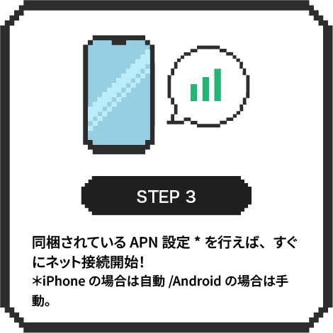 面倒な契約手続きは不要。購入後、使いたいタイミングでご自身のスマートフォンやタブレットに挿すだけで、誰でも簡単にすぐにご利用いただけます。また、使い終わった後の解約手続きやSIMカードの返却も不要です。